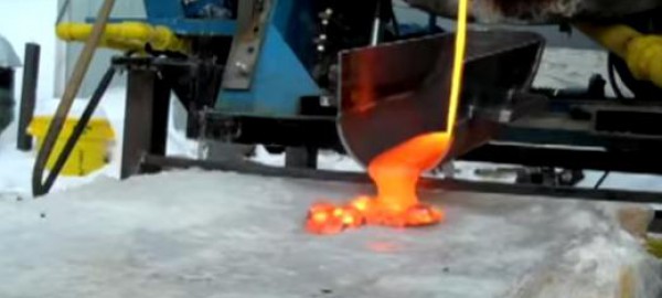 تجربة مثيرة لسكب حمم بركانية على لوح من الجليد