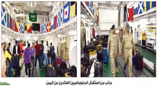 وبحسب صحيفة عكاظ السعودية اليوم الأحد، كشف عن ذلك قائد السفينة القتالية الدمام "الفرقاطة 816" العقيد بحري ركن صالح العمري خلال تحدثه عن تفاصيل اللحظات العصبية خلال إجلاء الدبلوماسيين من عدن.
