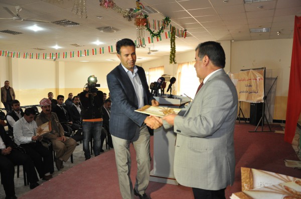 بحضور الاستاذ فهيم عيدالله رئيس مجلس محافظة دهوك و الشاعر الاديب قادر قجاخ القيادي في الحزب الديمقراطي الكوردستاني و السيدة بيريفان سليم شمو نائبة رئيس مجلس محافظة دهوك وو السيدة مينا سامي عضوة مجلس محافظة سليمانية و المستشار كاوة عيدو الختاري ممثل المركز العراقي في اقليم كوردستان و عدد كبير من ممثلي المؤسسات الاعلامية والصحفية العاملة في محافظة دهوك.