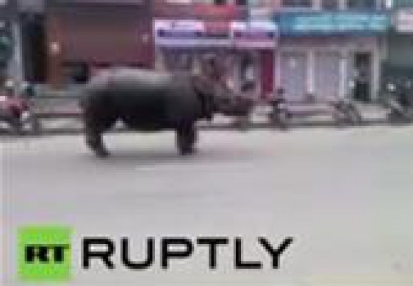 وحيد القرن يغادر المحمية ويتجول في الشوارع