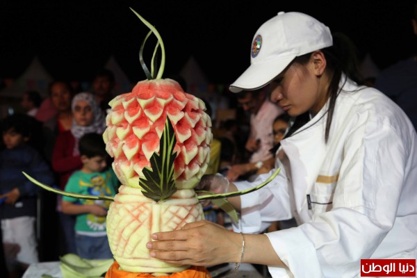 في المقابل، تضمنت فعاليات المهرجان في واجهة المجاز المائية مجموعة من عروض النحت على الثلج والفاكهة والتي قدمها طهاة عالميون متخصصون في هذا المجال، وشهدت إقبالاً من الجمهور، الذي تابع براعة الطهاة في تحويل مكعبات الثلج الكبيرة إلى أعمال فنية بديعة تحمل أشكالاً مميزة ، فيما تركز اهتمام طهاة آخرين على تحويل الفاكهة إلى وجوه باسمة للأطفال.