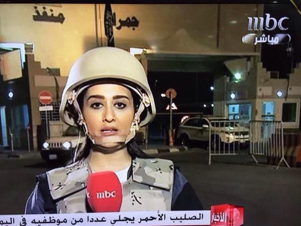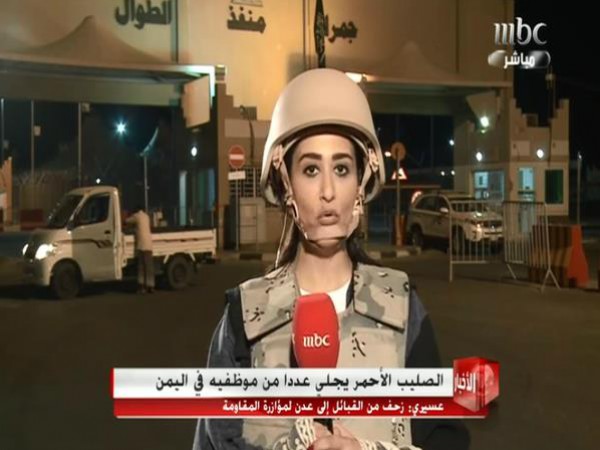 بالصور: جيهان الحداوي أول مذيعة سعودية تغطي "عاصفة الحزم" ميدانياً من أرض الحدث
