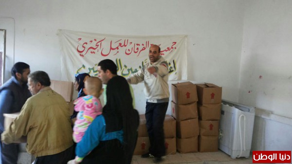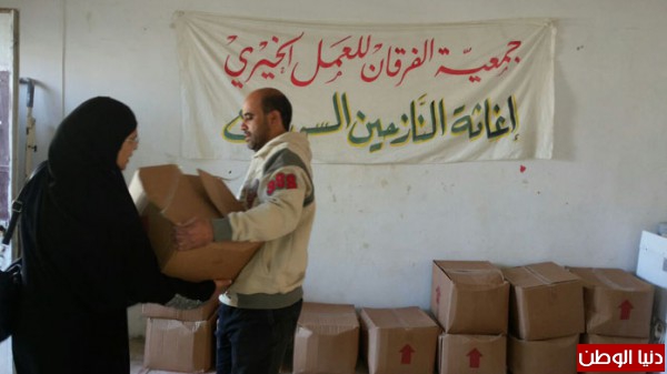 وزعت جمعية الفرقان للعمل الخيري في مخيم عين الحلوة بالتعاون مع اتحاد المؤسسات الإسلامية 112طرد غذائي في مركز ايوائها على أسر نازحة