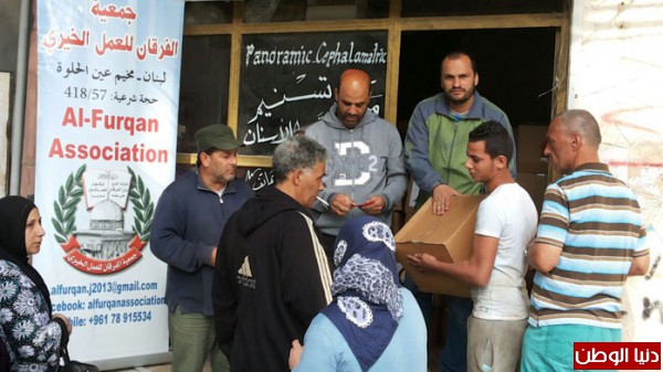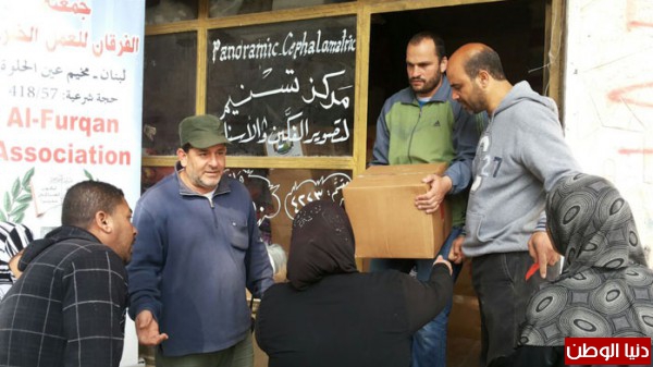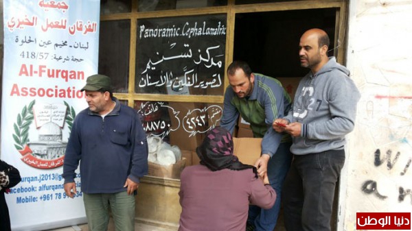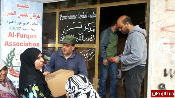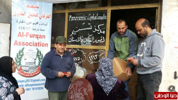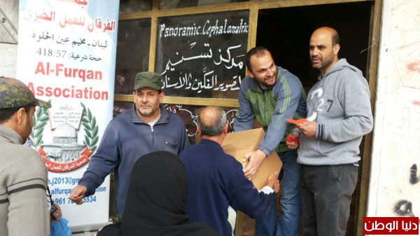 الفرقان توزع 325 طرد غذائي على النازحين والفقراء في مخيم عين الحلوة