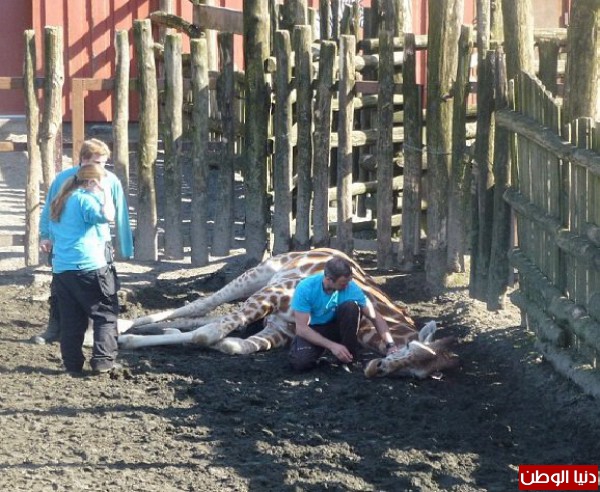 وقالت الصحيفة: إن الأطباء البيطريين بالحديقة أسرعوا لإنقاذ الزراف، لكنه فارق الحياة، بعد طعنه بقليل.
