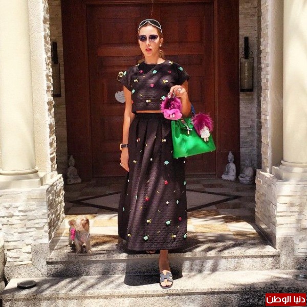 وأكثر ما لفت انتباه متابعيها في هذه الصورة، هو ارتدائها "شبشب" على الفستان، بشكل جعل إطلالتها تبدو غريبة بعض الشيء، وارتدت نظارة شمسية أخفت بها ملامح عينيها.