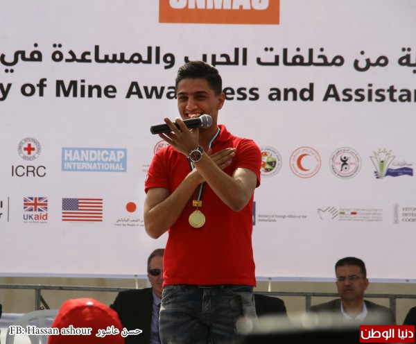 واصل الفنان الفلسطيني محمد عساف نشاطه الفني، من خلال مشاركته في فعاليات اليوم العالمي لمكافحة الألغام الأرضية في مدينة خانيونس بغزة .