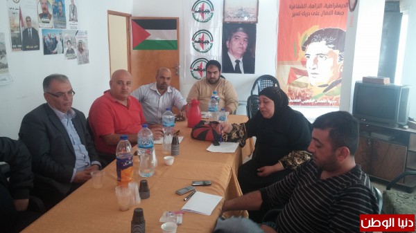 وقد استعرضت الجبهة خلال اجتماع فرعها بمحافظة طولكرم اليوم مجمل الأوضاع والمستجدات السياسية فلسطينيا ودوليا وإقليميا وإسرائيليا ، كما بحث الاجتماع الأوضاع التنظيمية والنقابية وناقشت التحضيرات لفعاليات ليوم الأسير الفلسطيني وغيرها من المناسبات والفعاليات ، كما أقرت قيادة الفرع تنظيم وقفة تضامنية مع مخيم اليرموك وذلك يوم السبت القادم في ساحة جمال عبد الناصر بطولكرم .