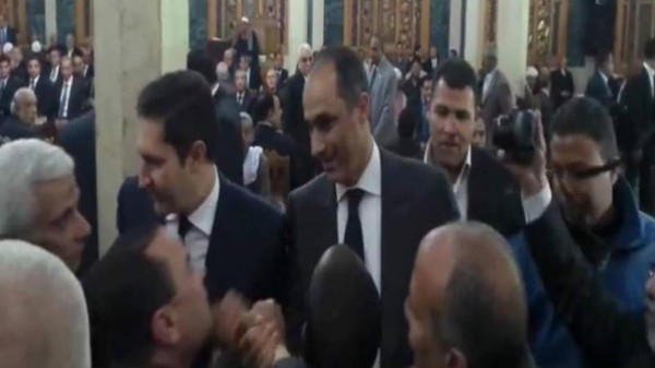 وكان الإعلامى أحمد موسى أول من استقبل نجلى مبارك، وأثناء خروجهما نزل مصطفى ومحمود بكرى من على سلالم دار المناسبات فى المساحة الخالية أمامها، وذلك ليفسح المجال أمام نجلى الرئيس الأسبق وقدموا العزاء فى مدة قاربت الربع ساعة.