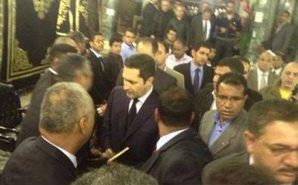 في أول ظهور لهما منذ ثورة يناير .. "علاء وجمال" مبارك يعزيان الكاتب مصطفى بكري بوفاة والدته..صور