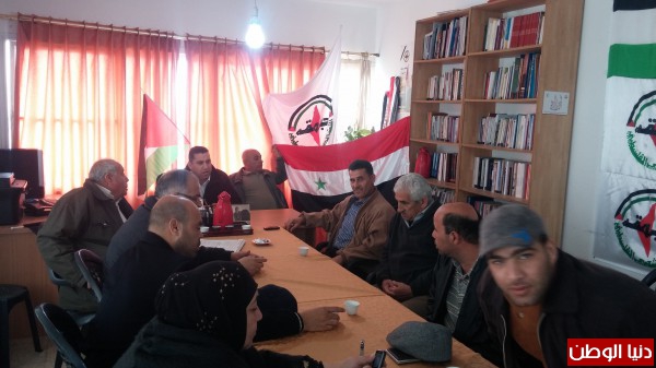 وطالبت الجبهة خلال لقاء سياسي نظمته اليوم بمناسبة الذكرى السنوية الأولى لرحيل القائد الرفيق خالد شعبان عضو المكتب السياسي للجبهة وتضامنا مع مخيم اليرموك بالتصدي لمخططات تصفية قضية اللاجئين وحقهم بالعودة من خلال استباحة المخيمات والقيام بجرائم وقتل وخطف لأبناء شعبنا للزج بأبناء شعبنا في أتون الأزمة الداخلية والصراع السوري السوري ضمن مخططات واضحة تستهدف الوجود الفلسطيني في سوريا التي تتعرض لأشرس حرب منذ 5 سنوات .
