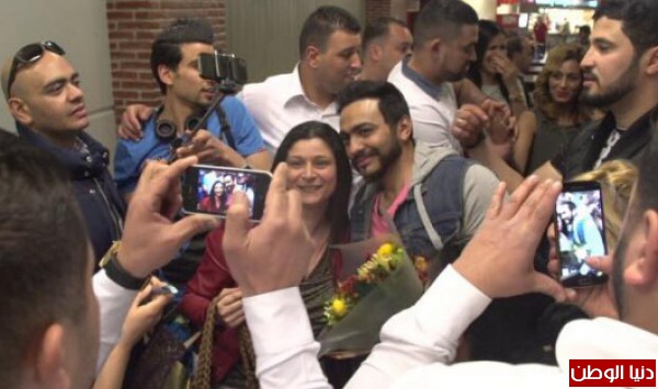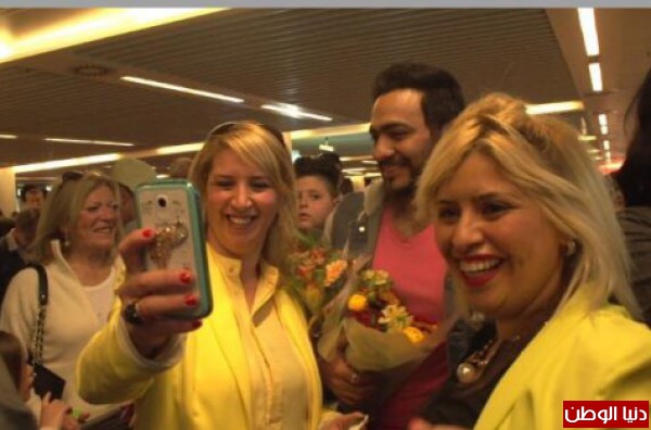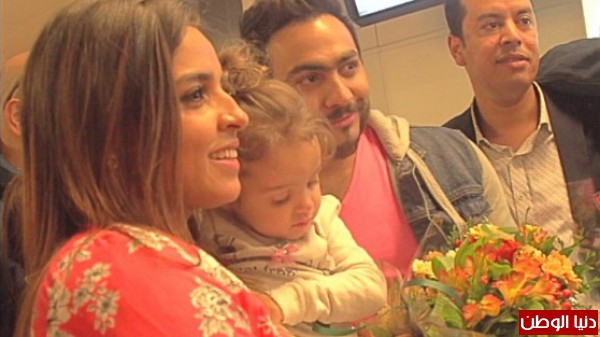 توافدت أعداد كبيرة من جمهور الفنان المصري تامر حسني، إلى مطار بلجيكا، لاستقباله والترحيب به.