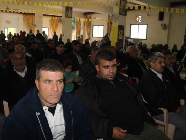 بمناسبة الذكرى السادسة و الاربعون لانطلاقة جبهة التحرير العربية اقيم في قاعة الشهيد فيصل الحسيني في مخيم الرشيدية مساء يوم 12/4/2015 مهرجان سياسي حاشد بحضور امين سر الساحة اللبنانية في جبهة التحرير العربية حسين الرميلي ابو حسان وقادة الجبهة في الساحة اللبنانية .