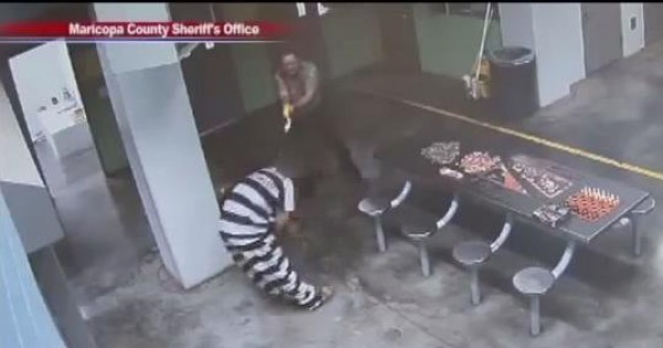 سجين يعاني من مرض نفسي يشن هجوما على حارس السجن ويوسعه ضربا