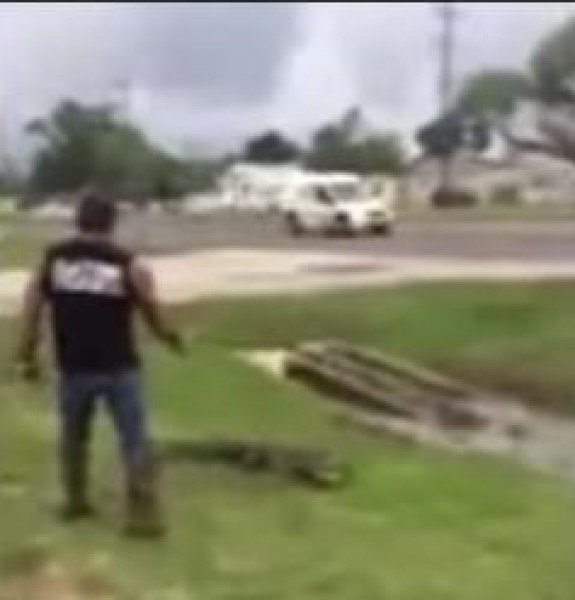 أمريكي يعثر على تمساح عملاق بحديقة منزله