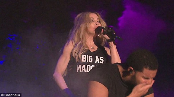وحضرت مادونا حفل كواتشيلا الموسيقي التى قدمت فيه أحدث أغنيتها على خشبة المسرح والتى جاء ضمن عرض الأغنية تقبيلها للممثل ومنتج الأغاني دريك، ولكنه من الواضح بأنه لم يحب تلك القبلة الغنائية، حسبما نشرت صحيفة “ديلي ميرور” البريطانية.