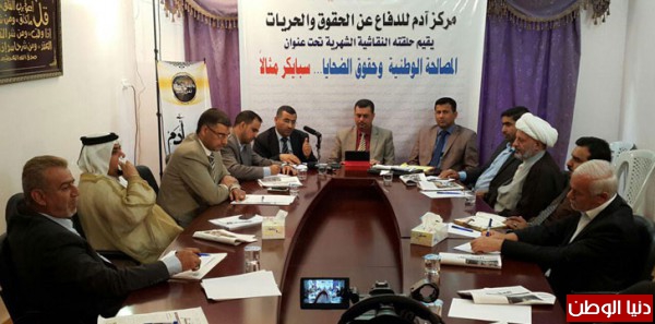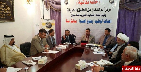 أقام مركز آدم للدفاع عن الحقوق والحريات حلقة نقاشية تحت عنوان "المصالحة الوطنية وحقوق الضحايا...سبايكر مثالا". يوم الأحد المصادف 12/4/2014 وعلى قاعة جمعية المودة والازدهار وبحضور عدد من الباحثين والأكاديميين والحقوقيين.