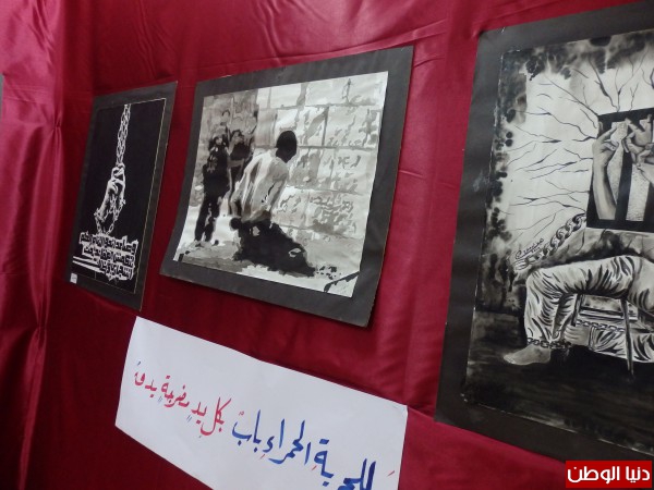 وأشار كذلك إلى أنالمعرض يحوي زاوية لعدد من الرسومات التي تعبر عن ما يعانيه الأسرى داخل سجونالاحتلال، إذ يتجاوز الاحتلال كافة القوانين والمواثيق الدولية من خلال ممارساتهوالتستر على المفسدين.