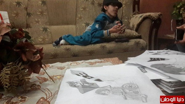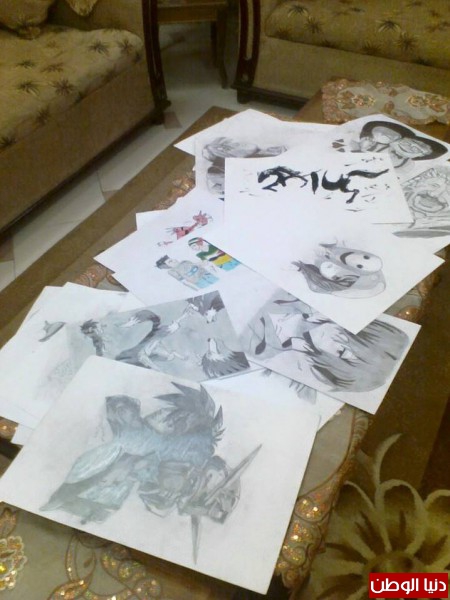 يتابع محمد حديثه لدنيا الوطن حول طبيعة لوحته الفنية " حضور بعض وسائل الاعلام يرفع معنوياتي احيانا، لدى 600 لوحة رسمتها في فترات زمنية مختلفة منها في وقت قصير واخريات تأخذ وقت اطول داخل منزلي وهذه الغرفة(..) استخدم قلم الرصاص بشكل اساسي بالإضافة الى الورق الابيض شقيقتي تساعدني في الرسم وفي توضيب رسوماتي واعلمها بعض منها".