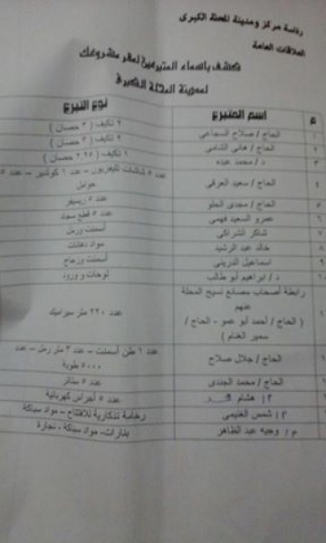 فى لفتة تحسب لرئاسة مركز ومدينة المحلة الكبرى تم حصر اعداد رجال الاعمال الذينقدموا التبرعات المالية والعينية للمساهمة فى انجاز المشروع القومى مشروعك وتجهيزة بالاجهزة وشاشات العرض واجهزة التكيف والمكاتب والاثاث والمفروشات واللوحات واعمال التشطيبات والدهاناتوالتبليط وكل مستلزمات تشطيب المشروع ومن المنتظر ان يتمتكريم كل هولاء فى احتفال ينظمة مركز ومدينة المحلة الكبرى .