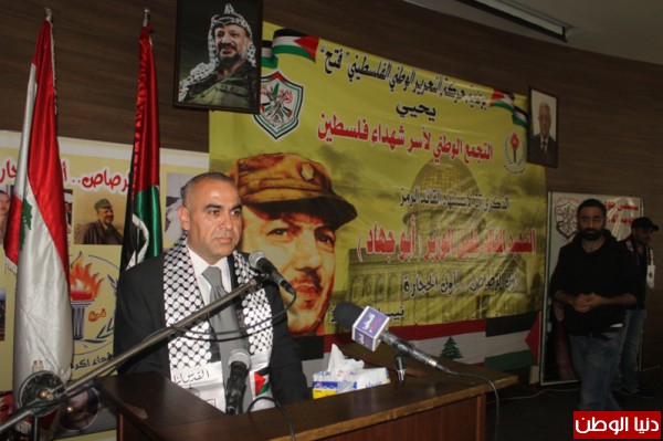 برعاية حركة التحرير الوطني الفلسطيني فتح احيا التجمع الوطني لاسر شهداء فلسطين الذكرى السابعه والعشرين لاستشهاد القائد الرمز الشهيد الخالد خليل الوزير ابو جهاد ,اول الرصاص اول الحجارة ,ونظم مهرجانا سياسيا بحضور الامين العام للتجمع القادم من ارض الوطن فلسطين محمد صبيحات وسط حشد جماهيري من مخيمات لبنان وذلك مساء يوم الجمعه 17-4-2015, تقدم الحضور سفير دولة فلسطين في لبنان اشرف دبور ،امين سر فصائل منظمة التحرير الفلسطينية وحركة فتح في لبنان فتحي ابو العردات ,قائد الامن الوطني الفلسطيني في لبنان اللواء مسؤول اللجنة الامنية الفلسطينية العليا صبحي ابو عرب ، ممثلي فصائل منظمة التحرير الفلسطينية تقدمهم عضو المكتب السياسي لجبهة التحرير الفلسطينية الاخ صلاح اليوسف ، نائب مسؤول الجبهة الشعبية في لبنان ابو جابر ، مسؤول حزب الشعب الفلسطيني في لبنان غسان ايوب، مسؤول الجبهة العربية الفلسطينية محي الدين كعوش، امين سر التجمع الوطني لاسر شهداء فلسطين في لبنان عصام الحلبي ،مسؤول القيادة العامة في منطقة صيدا رفعت جبر، مسؤول حركة حماس في منطقة صيدا ابو احمد فضل، مسؤول حركة الجهاد الاسلامي في منطقة صيدا عمار حوران، المسؤول التنظيمي لانصار الله الحاج ماهر عويد، عضو قيادة حزب فدا في لبنان مصطفى مراد ، ممثل الجبهة العربية عضو قيادتها محمد اسماعيل، والقوى الوطنية والاسلامية اللبنانية والفلسطينية والتحالف الفلسطيني, وفد من اقليم قلقيله القادم من ارض الوطن فلسطين واعضاء اقليم حركة فتح في لبنان ,امين سر اللجان الشعبية في لبنان ابو اياد شعلان,تقدم الحضور اللبناني عضو المكتب السياسي لحركة امل بسام كجك,مسؤول حزب الله في منطقة صيدا الشيخ زيد ضاهر , محمد منيمة ممثلا تيار المستقبل ، امين الحريري ممثلا النائب بهية الحريري ،ممثل مفتي صيدا الشيخ ابراهيم الديماسي , محمد ضاهر عضو المكتب السياسي للتنظيم الشعبي الناصري,الدكتور عبد الرحمن البزري ، والشيخ يوسف المسلماني ,الحاج ابو صهيب ممثل تيار الفجر , عضو قيادة الحزب العربي الاشتراكي في الجنوب - حركة الاشتراكيين العرب علي طقو، وممثلين عن الحزب التقدمي الاشتراكيين .