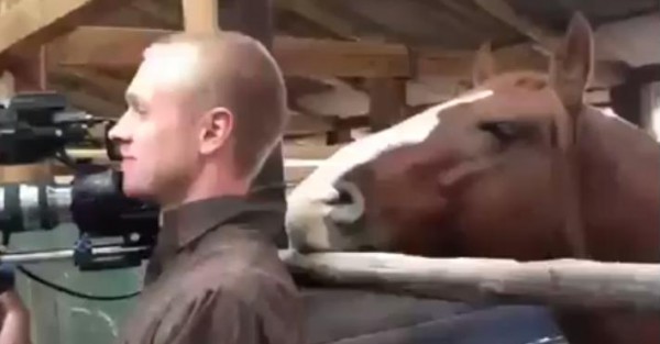 حصان يتحرش بمصور أثناء تصوير تقرير تلفزيوني