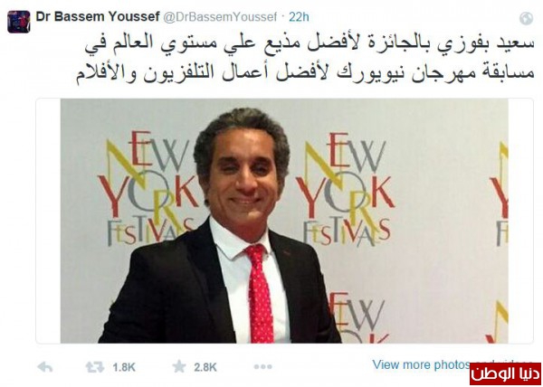 باسم يوسف يفوز بجائزة أفضل مذيع على مستوى العالم