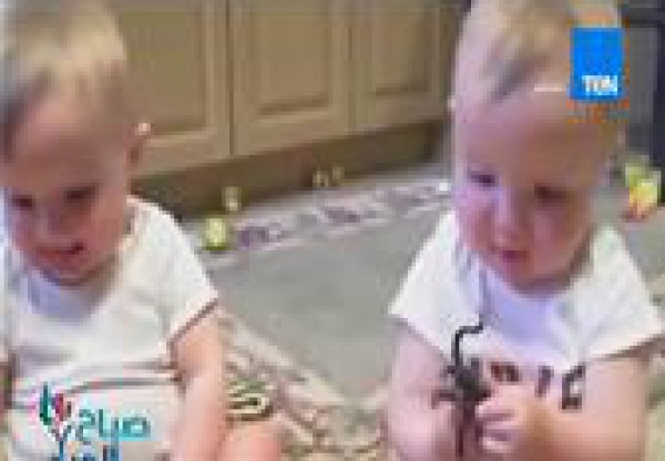 طفلان توأم يحاولان تقليد "عطسة " والدهم بطريقة رائعة