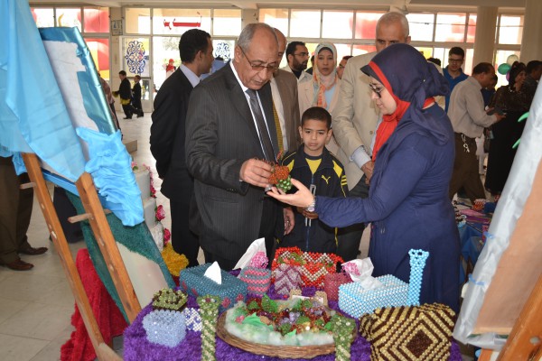 كما قام السكرتير العام فى بداية الإحتفال بإفتتاح المعرض الخاص بمنتجات الطلاب من الأعمال الفنية واللوحات والأشغال اليدوية .