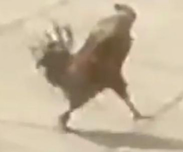 ديك يمشي على الموسيقى العسكرية