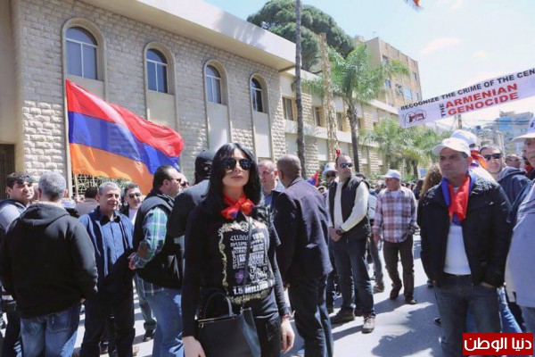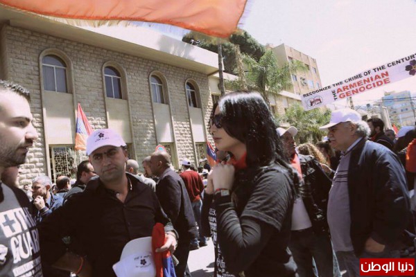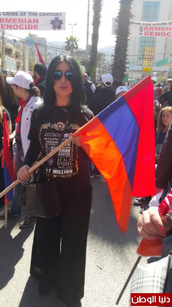 بالصور و الفيديو .. ماريا تشارك فى مسيره حاشده ببيروت فى ذكرى مرور مائه عام على مذبحه الأرمن