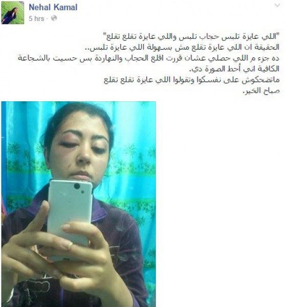 نشرت المطربة المصرية الشابة، في فرقة “جاوي”، نهال كمال، صورة لها على حسابها في موقع التواصل الاجتماعي الـ”فيسبوك”، الإثنين، تعليقًا على دعوات “خلع الحجاب” التي أطلقها الصحفي، شريف الشوباشي وفقا لموقع دوت مصر.