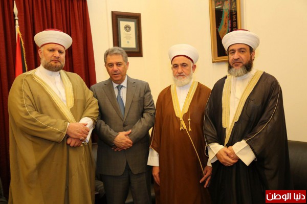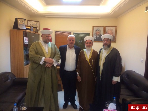 زار وفد مجلس علماء فلسطين في لبنان برئاسة الدكتور الشيخ حسين قاسم وكل من الناطق الرسمي للمجلس الشيخ محمد صالح الموعد وأمين سر المجلس الشيخ هشام عبد الرازق السفارة الفلسطينية، حيث التقى الوفد بالسفير الفلسطيني الأخ الأستاذ أشرف دبور وأمين سر فصائل منظمة التحرير الأخ فتحي أبو العردات، إستنكر المجتمعون ما يدور من إعتداءات على القدس مؤكدين أن لشعبنا الحق في الدفاع عن مقدساته وبالعودة الى أرضه، كما بحثوا في الأوضاع التي تمر فيها المنطقة، وأكدوا على أهمية ترتيب البيت الفلسطيني، ولزوم إنهاء الإنقسام، والعمل على وحدة الصف، وترسيخ الأمن في مخيماتنا، والمحافظة على أفضل العلاقات مع الجوار، منبهيّن الجميع أن يستفيدوا من أخطاء الماضي خاصة مما حصل لأهلنا في مخيم نهر البارد وما يدور الأن في مخيم اليرموك وغيره من المخيمات، كما اتفق المجتمعون أن اي خلاف عربي عربي ليس لمصلحة قضيتنا لأننا نريد من أشقائنا العرب جمعيا أن تبقى فلسطين حي في نفوسهم و عقولهم، وأن لا ينسوا ما يدور في القدس من تهويد، وأن يعملوا على رفع الظلم والقتل المستمر على أهلنا في فلسطين، وإطلاق سراح آلاف المعتقلين القابعين في عتمة سجون العدو الصهيوني، ووقف بناء المستوطنات، ومن جهته أكد وفد المجلس على إستمراره بالعمل لتذليل كل العقبات التي تضر بشعبنا وتوحيد الصف وحقن الدماء وتوجيه البوصله نحو قضية الأمة الأساس فلسطين.