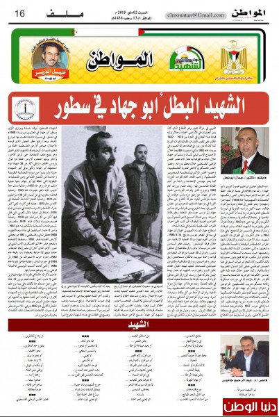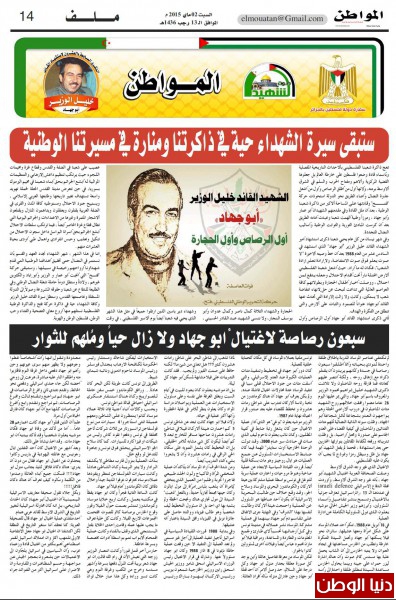أصدرت صحيفة المواطن الجزائرية وبالتعاون والتنسيق مع سفارة دولة فلسطين فى الجزائر وتحت إشراف وإعداد الأخ :- خالد صالح (عزالدين ) مسؤول ملف الأسرى فى الإعلام , ملحق "صوت الشهيد" صباح اليوم السبت الموافق 02-05-2015، وهو العدد الخاص فى الذكرى السابعة والعشرين لاستشهاد أمير الشهداء القائد الكبير خليل الوزير "ابو جهاد: ، حيث يحتوي العدد على 16 صفحة يتناول العديد من المواضيع والمقالات الخاصة بالشهيد فى ذكراه والتي كتبها ثلة من كتاب الرأي بالجزائر و فلسطين.