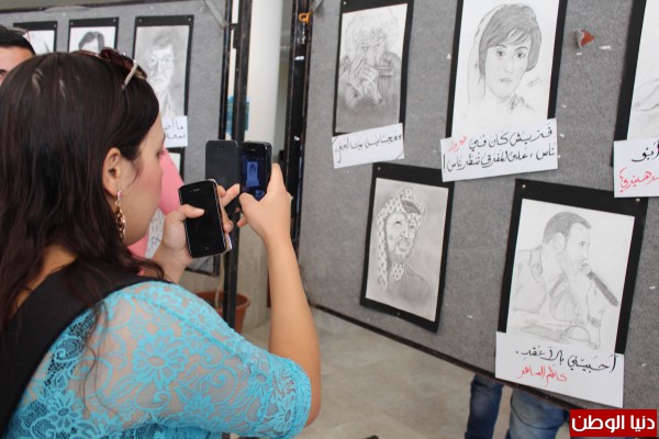 واحتوى المعرض، على 66 لوحة، رسمت بقلم الرصاص والألوان المائية، تضمنت الرسومات قيادات فلسطينية، وشخصيات فنية، ورسومات كاريكاتيرية.