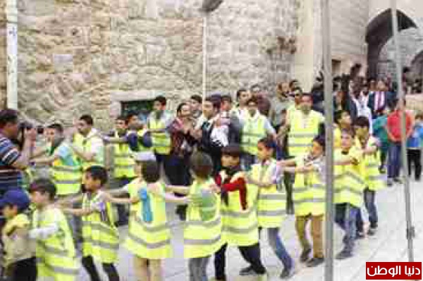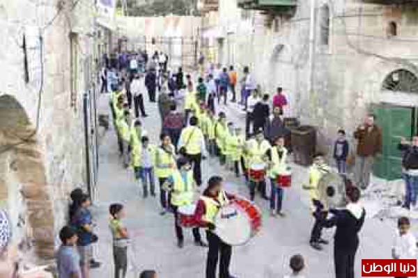الأول من آيار لـعام 2015م في إحياء موروث ثقافي وتقليدي تمثل في " الزفة الخليلية" وهي زفة العريس من الحرم الإبراهيمي الشريف .