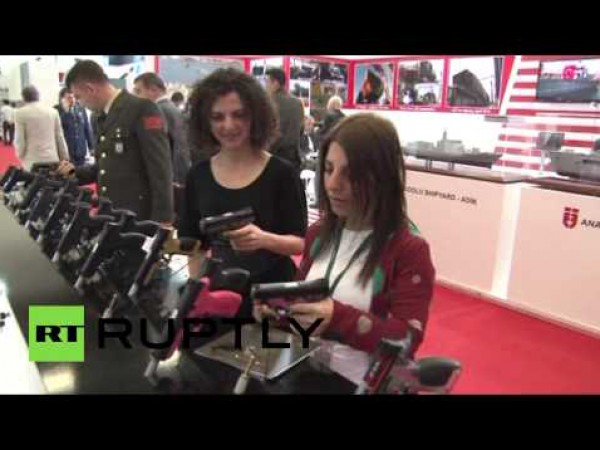 حاولت شركة جيرسون التركية لتصنيع الأسلحة بعث الحماس لدى النساء لاستخدام تصميمها الجديد للمسدسات في معرض الصناعات الدفاعية الدولي في إسطنبول.