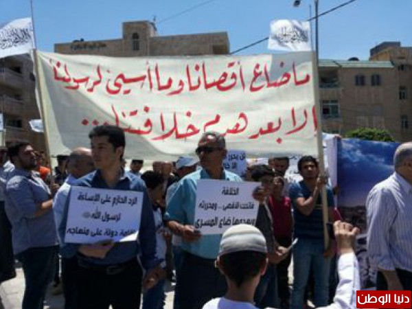 تحت شعار ) معا نحو الخلافة على منهاج النبوة لنمحوا عار ضياع الأقصى والإساءة لرسولنا الكريم ( نظم حزبالتحرير في الأردن عدد من الوقفات بعد صلاة الجمعة من أمام المساجد في عدة مدنأردنية منها العاصمة عمان- أمام مسجد أبو درويش في الأشرفية ومقابل مسجد مستشفىالأمير حمزة في الهاشمي- والزرقاء والرصيفة- مسجد ضاحية المدينة المنورة- وإربد – مسجد جامعة اليرموك-، وذلك في الذكرىالرابعة والتسعين لهدم الخلافة، وضمن حملة الخلافة التي نريد.. على منهاج النبوة.