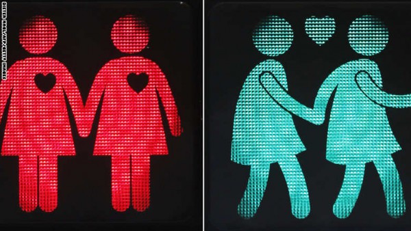 فبدلا من رسم لشخص يمشي وحده أو لا يمشي، ستظهر الأضواء امرأتين أو رجلين أو يدي زوجين من جنسين مختلفين، مع قلوب صغيرة تضيئ بينهما.