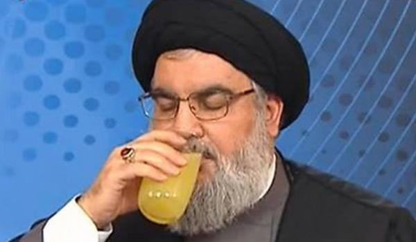 وعما شاع عن محتوى الكأس الذي يظهر على طاولته اثناء الخطابة، والذي شاعت اخبار انه يحتوي دواء يؤكد اصابته بمرض ما، أوضح نصرالله ان الكأس يحتوي الليموناضة والهدف من تناوله اثناء الخطابة هو ترطيب الفم.