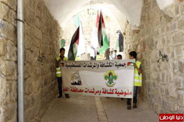 الابراهيمي منذر ابو الفيلات وعدد من الشخصيات وجمع من المواطنين، وتحدياً منها لممارسات جنود الإحتلال الصهيوني والمستوطنين بحق المواطنين العزل في مدينة الخليل عامة وأهالي البلدة القديمة منها خاصة جابت المسيرة الكشفية جميع حارات البلدة القديمة ودخلت من البوابات الحديدية التي يقيمها الاحتلال على مداخل الحرم الإبراهيمي، وعملت على تنظيم