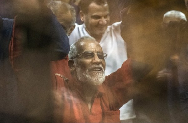وقبل بدء الجلسة التي سمح للتلفزيون المصري منفردا بنقلها من قاعة المحكمة، قالت المذيعة: وقائع الجلسة لم تبدأ بعد، لكن كانت فيه منذ قليل وجوه الجماعة الإرهابية ترفع إشارات رابعة مع إصرار.. في الحقيقة.. مع أنهم يواجهون أخطر قضية تواجه البلد".