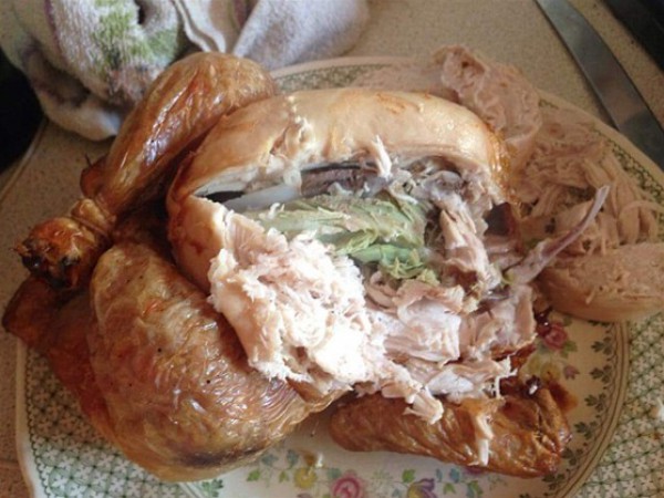 أصيبت إحدى السيدات بالرعب بعد أن اكتشفت أن اللحم الداخلى للدجاجة التي اشترتها أخضر اللون.