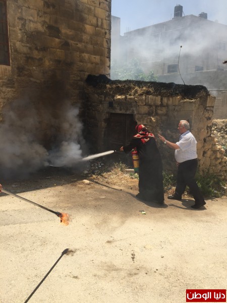 بدوره القى عضو الهيئة الادارية المقدم شرطة المتقاعد محمد هشام القدومي محاضرة عن انواع الحرائق واسباب حدوثها وكيفية التصرف السليم والطفايات وانواعها وكيفية استخدامها , وتم تطبيق تمرين عملي جرى خلاله اطفاء الحرائق باستخدام الطفايات من قبل المتدربات