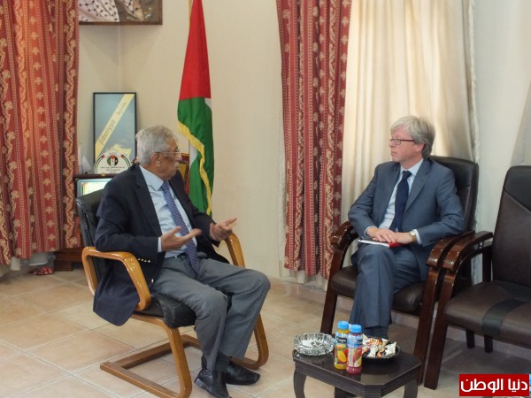 كما اطلعه على الجهود التي تبذلها القيادة الفلسطينة في المحافل الدولية لاقامة السلام العادل بين الشعبين يضمن إقامة الدولة الفلسطينة بعاصمتها القدس الشريف من جهته قال القائم بأعمال القنصل البريطاني ان هدف الزيارة هي الاطلاع على الاوضاع السياسية والاقتصادية في المنطقة
