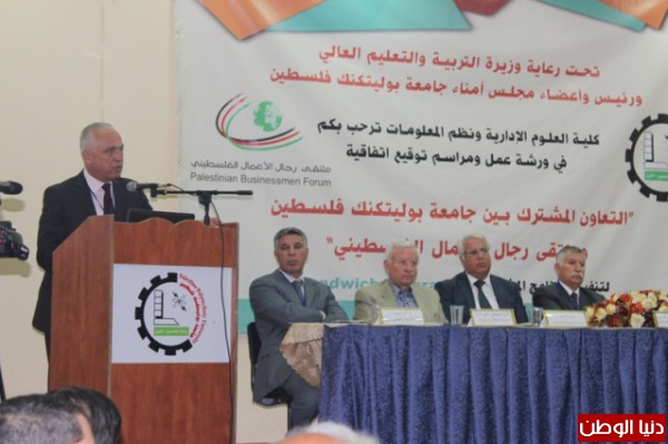 لما لذلك لأهمية كبيرة في توفير خبرة عملية للطلبة في مواقع الشركات والقطاع الخاص. مشيراً إلى البطالة المقنعة في السوق الفلسطيني، وأهمية توفير توجيه الكفاءات حول التخصصات التي يحتاجها سوق العمل ومن جانبه بارك نائب محافظ محافظة الخليل هذه الاتفاقية وأشاد بالشراكة الإستراتيجية بين جامعة بوليتكنك فلسطين وملتقى رجال الأعمال الفلسطيني لربط الجامعات بسوق العمل وتوفير فرص عمل لخريجي الجامعات الفلسطينية.