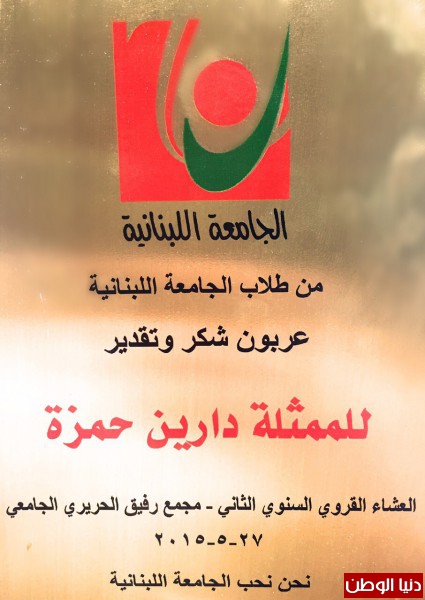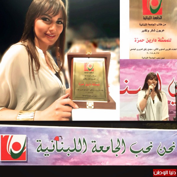كرمت الجامعة اللبنانية في حفلها السنوي وتحت عنوان (نحن نحب الجامعة اللبنانية)، نخبة من النجوم والشخصيات، ومن بينهم النجمة اللبنانية دارين حمزة، وهي إحدى خريجات الجامعة.