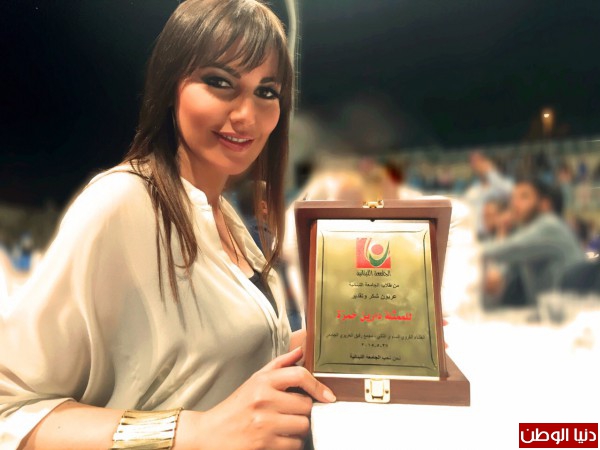 التكريم جاء عربون تقدير على النجاحات التي حققتها دارين في السينما والتلفزيون، وكان ملفتا تفاعل طلاب الجامعة معها، لحظة تسلمها للدرع التكريمي من إدارة الجامعة.