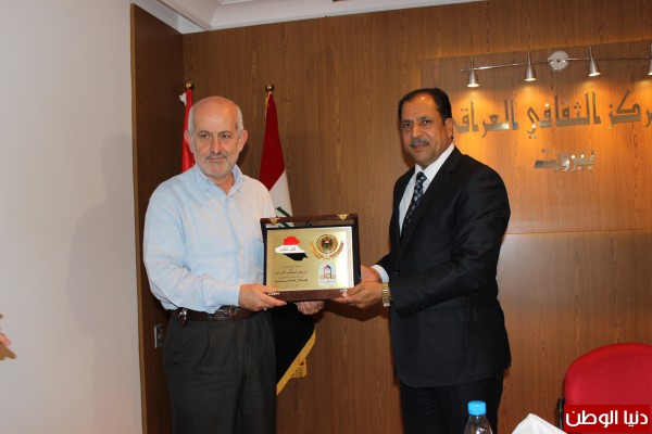 ومنح المركز الثقافي العراقي درع وفاء وتقدير للدكتور طلال عتريسي اعتزازا من ادارة المركز لمسيرته العلمية والاكاديمية قدمه مدير المركز الدكتور علي عويد العبادي .