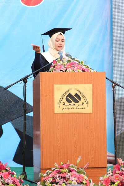 وكان للخريجات كلمة في هذه المناسبة القتها كل من الطالبة ضحى ابو عرقوب في اللغة العربية والطالبة اميرة المصري في اللغة الانكليزية شاكرين فيها الهيئة التعليمية والادارية على كل ما قدموه لهن خلال الاعوام الدراسية كما وشكروا مؤسسة الرعاية على الدعم المادي طيلة هذه السنوات.